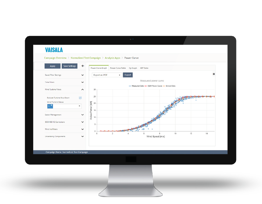 搭配功能丰富且安全的数据分析软件 WindCube Insights — Analytics,该软件可执行功率曲线测试、年度发电量 (AEP) 和不确定度计算,令功率曲线测试的分析大幅简化