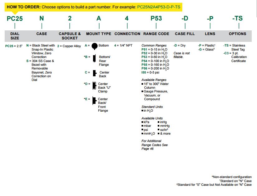 REOTEMP的PC25S2系列黄铜压力表设计用于低压应用,其干燥气体与铜合金兼容。 例如:排气系统和鼓风机。